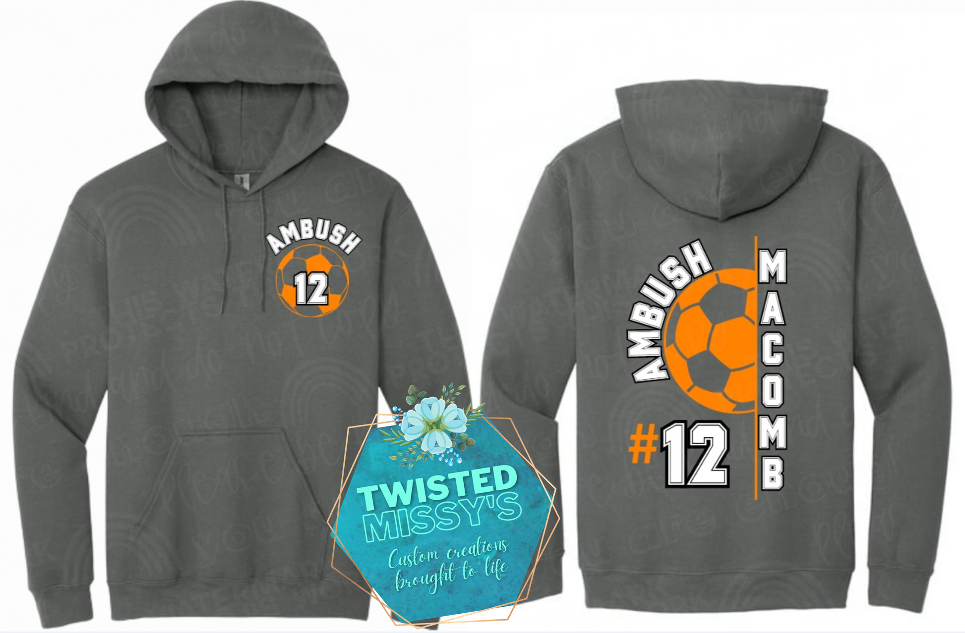 Ambush Soccer Charcoal Grey Adult and Youth Unisex Hoodies.